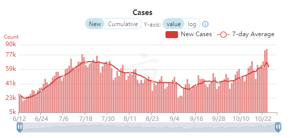 2020年10月23日(周五),全美单日新增新冠确诊病例83,757例,超过了7月16日报告的77,362例单日新增,创下自疫情以来的最高纪录