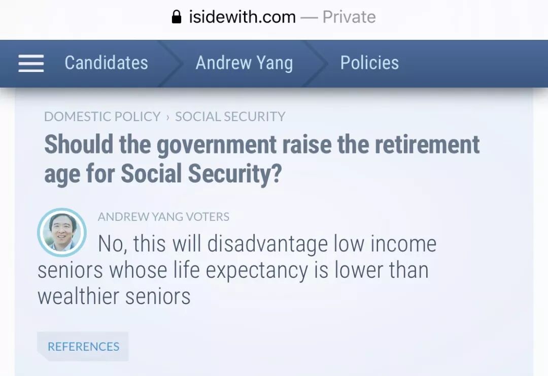 27. 国内政策›社会保障 问:政府应该提高社会保障的退休年龄吗?答:不,这将不利于平均寿命低于较富裕老年人的低收入老年人
