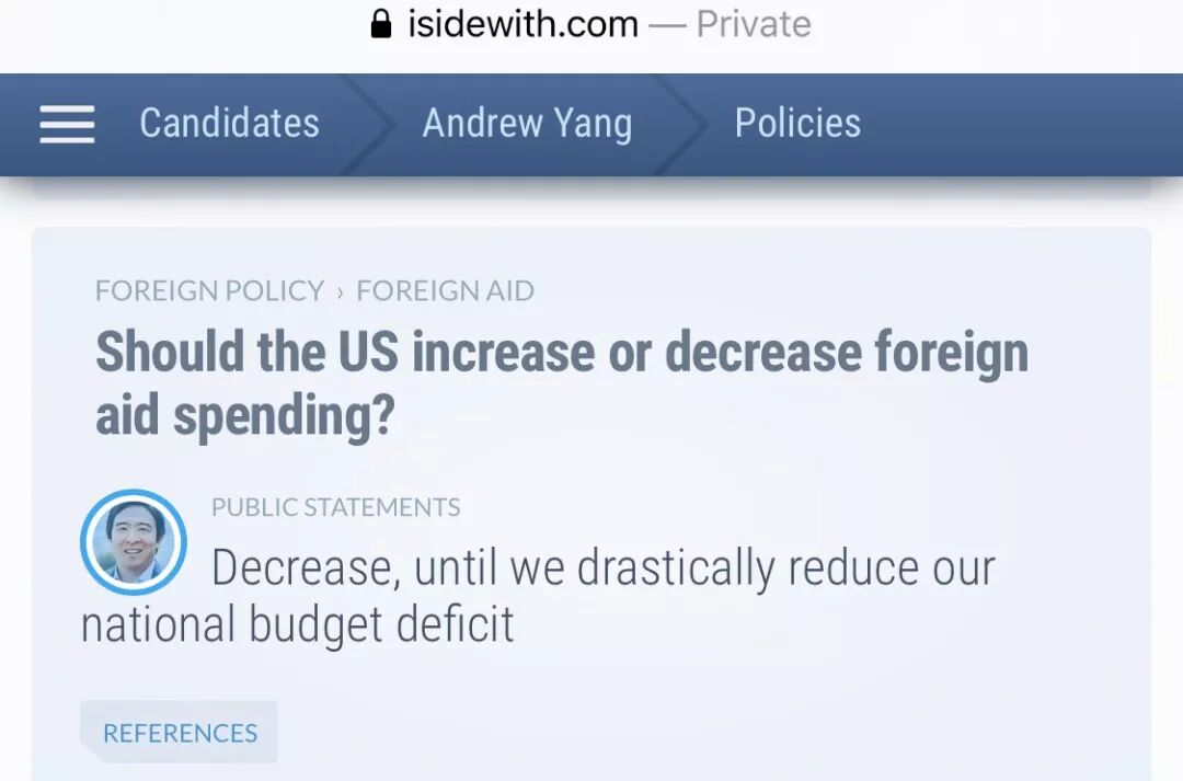 24. 对外政策›对外援助 问:美国应该增加还是减少对外援助支出?答:减少公共预算,直到我们大幅减少我们的国家预算赤字