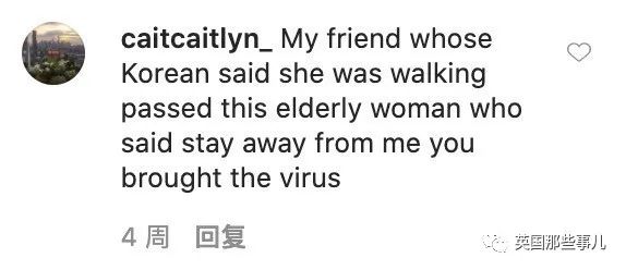 “我有个朋友是韩裔的,她说她经过一个老太太身边时,老人直接对她说,你离我远点,就是你们带来了病毒……”