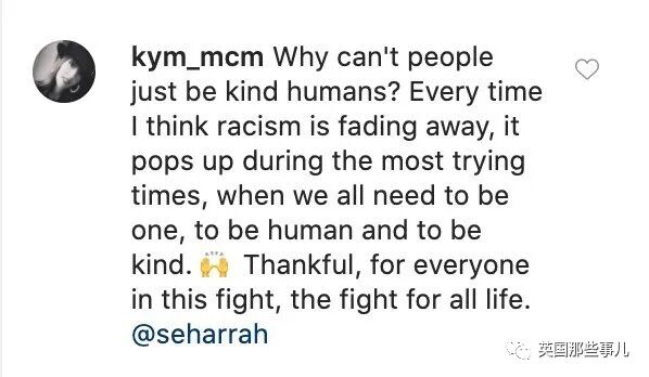“为什么不能做善良的人?每次我以为种族主义就要消退的时候,它总会重新冒头。我们应该是一个整体,作为人类的整体,友好相处。感谢这场抗疫中的每一个人,这是为所有生命进行的抗争。”